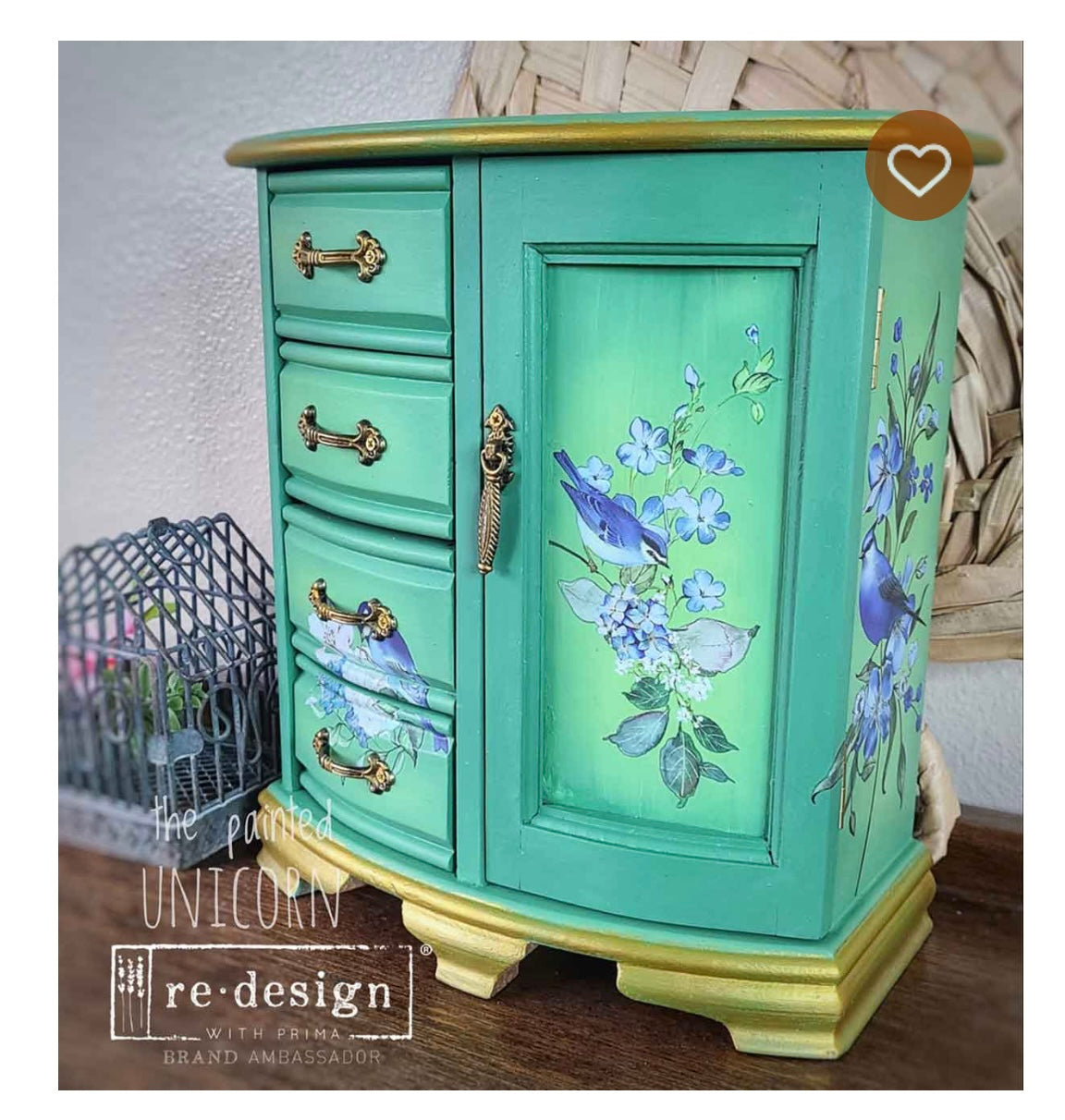 Bring a touch of tranquility to your home with the Garden Whispers Small Décor Transfer®. This stunning 3-sheet set (6″x12″) is alive with delicate shades of blue, soft greens, and graceful birds perched among blossoming florals. Each design captures the essence of a serene garden at dawn, making it perfect for furniture transformations, accent walls, or charming home decor projects.